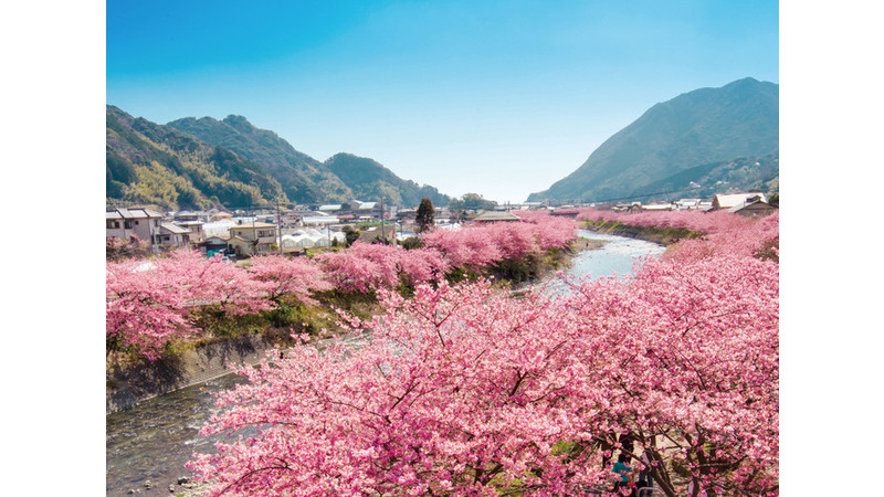 まだ肌寒い時期にお花見がいち早く楽しめる河津桜まつりは、 1ヶ月間多くの人出で賑わう河津の一大イベントです。 夜にはライトアップされた桜並木を見ることができとても幻想的です。 また、期間中さまざまなイベントも開催されます。