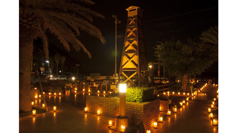 海岸沿いの遊歩道をキャンドルが飾ります。 満天の星空を眺めながらの散歩はいかがですか?