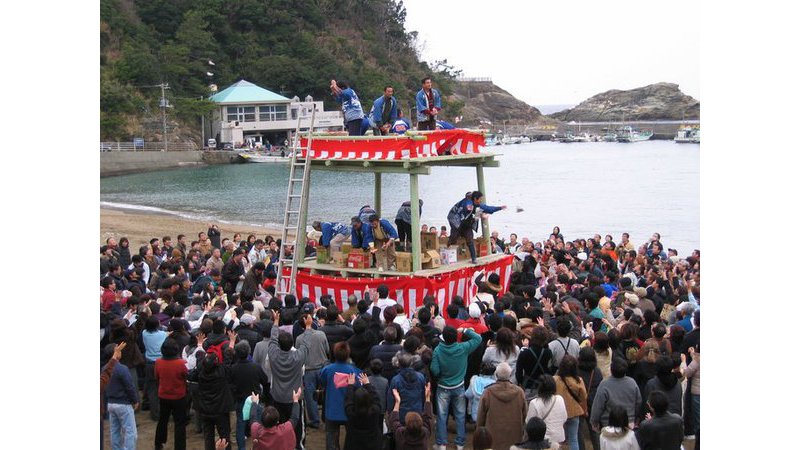 新春のイベントとして毎年1月2日に餅や菓子をまき、安全祈願や豊漁・観光の発展を祈願します。