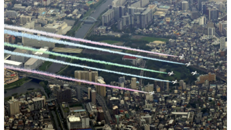 航空自衛隊は30日、東京パラリンピック開会式当日の24日に曲技飛行チーム「ブルーインパルス」が都内を飛行後に入間基地(埼玉県)に戻った際、適正な高度よりも低い高度でカラースモークを使用していたと発表した。 空自によると、25日以降、基地周辺の自動車計約300台分について、カラースモークと思われる物質が付着しているという問い合わせが複数あった。物質の幅は最大0.5ミリ程度で、1台に10カ所以上付着しているものもあるという。 空自は「ご心配をお掛けし、おわびする。カラースモークとの因果関係は確認中だが、人体や環境への影響は問題ないレベルと考えている」としている。