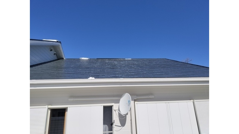 遮熱塗料の効果でしょうか、我が家の屋根の雪は地面に滑り落ちて、添付した写真のような状態です。近隣の家の屋根を見ても、このような家はありません。
