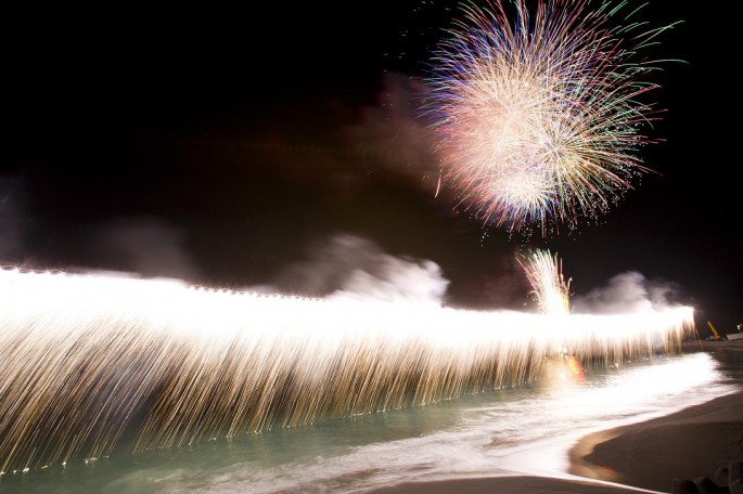 熱川海上花火大会の目玉となるものが300メートルのナイアガラ花火!!