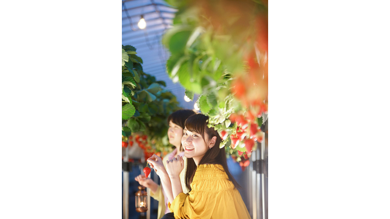 幻想的な光のもと、ロマンチックないちご狩りをお楽しみください。