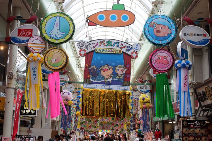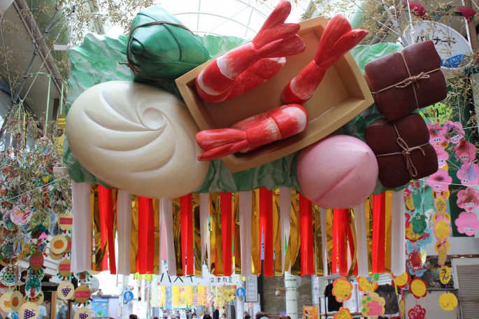 毎年恒例の保育園・幼稚園の笹飾りや、小学校・老人ホームのメガ短冊、各商店の力作装飾が並びます。 期間中はさまざまなイベントが繰り広げられます。