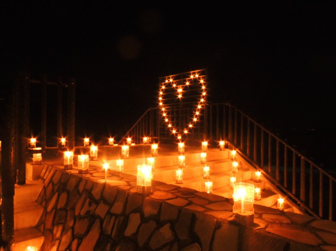 海岸沿いの遊歩道をキャンドルが飾ります。 満天の星空を眺めながらの散歩はいかがですか?