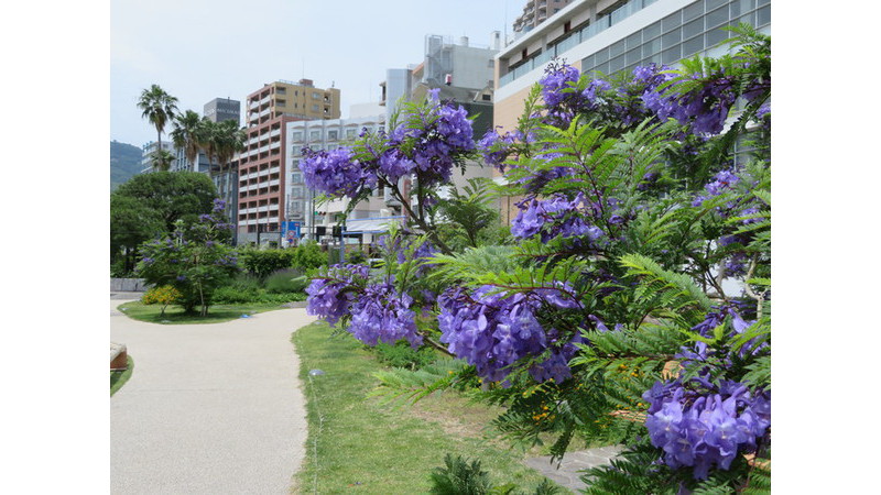 海岸通りに大小約120本あり、毎年6月に美しい紫色の花を咲かせます。