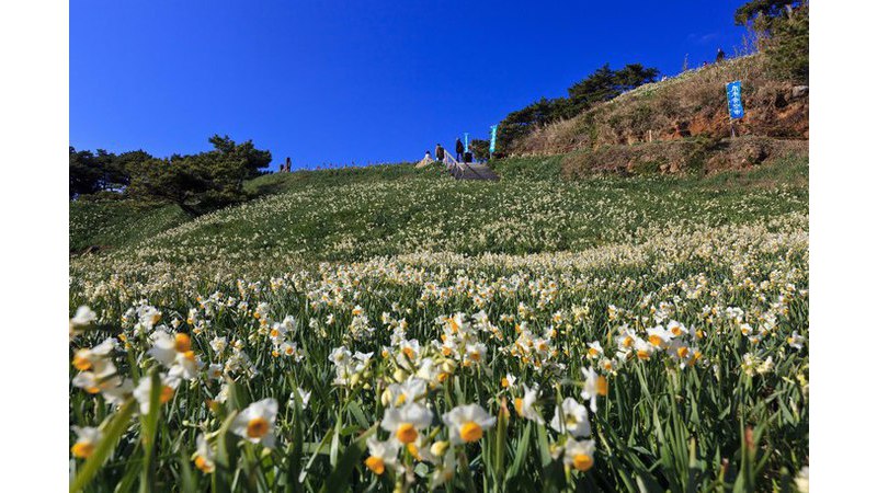 下田・須崎半島の先端に位置する爪木崎では毎年300万本もの野水仙やアロエの花があたり一面を染め上げます。期間中行事イベントがある日もあります。