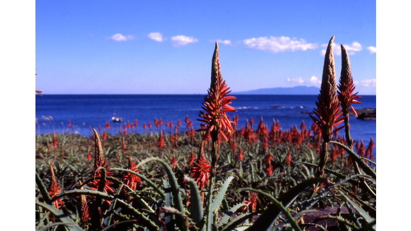 白浜一色地区はアロエの里とよばれ、花の咲く時期になるとあたりは一面が赤く染まる程きれいになります。