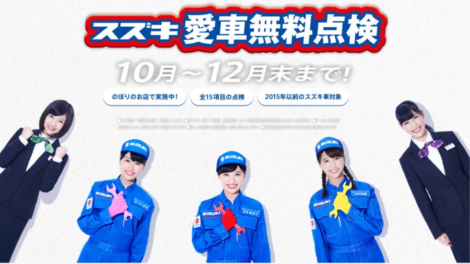 平成27年以前のスズキ車お乗りの皆様なら無料15項目点検をさせていただきます(o^O^o)