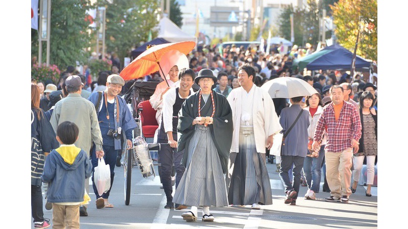 三嶋大社前から広小路駅までの大通りを歩行者天国に!! 江戸時代の東海道三島宿の賑わいを再現したイベントです。