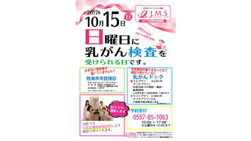 今年も、日本乳がんピンクリボン運動「ジャパンマンモグラフィサンデー」に賛同し、
