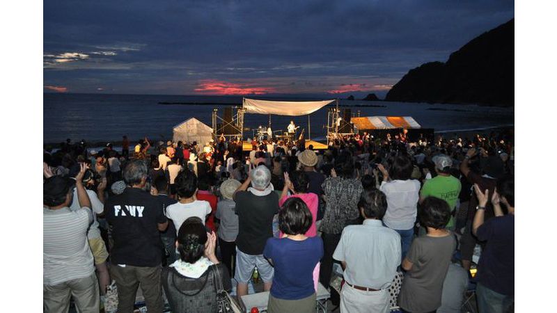 海岸に設置された特設ステージで「夕陽コンサート」を行います。
