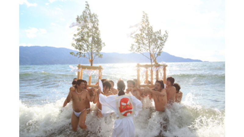 沼津市の古社楊原大朝神社の例大祭ご神事で、神輿を担いだふんどし姿の男衆が冬の海に分け入る勇壮なお祭りです。 沼津のお宝100選。 会場までは、沼津駅から我入道循環バスでどうぞ。