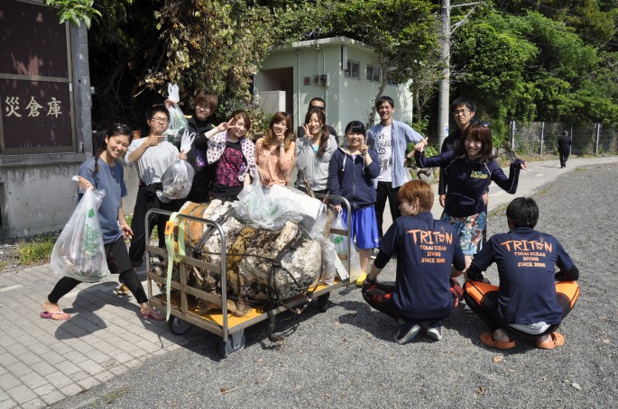 毎年多くのダイバーの皆さんにご参加いただき、海中・海岸の清掃をしていただいております。