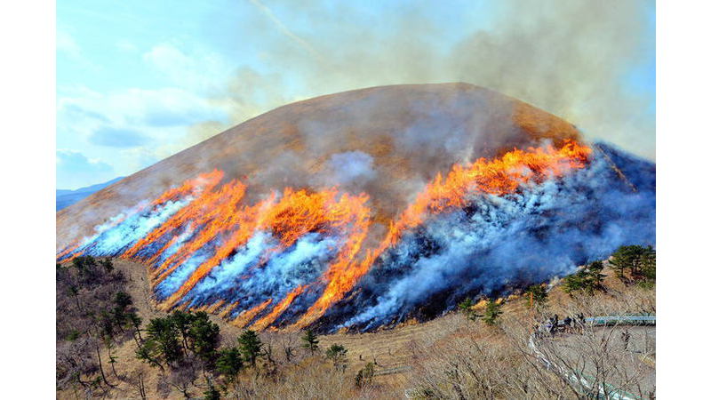 完全にカヤが乾燥していないと全山をきれいに焼き尽くせないため、前日までの天候や当日の気象条件により、延期となる場合がありますのでご注意ください。延期になる場合は、翌週の日曜日となります。開催の有無は、ホームぺージ・Facebookでご案内いたします。)