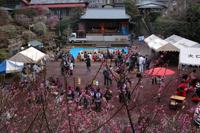 約80種類、約600本もの梅が咲き誇ります。 俳句大会、写生コンクール、写真コンテストなど多彩なイベントが行われ、地元の子供からお年寄りまでが大勢集まり、賑わいます。