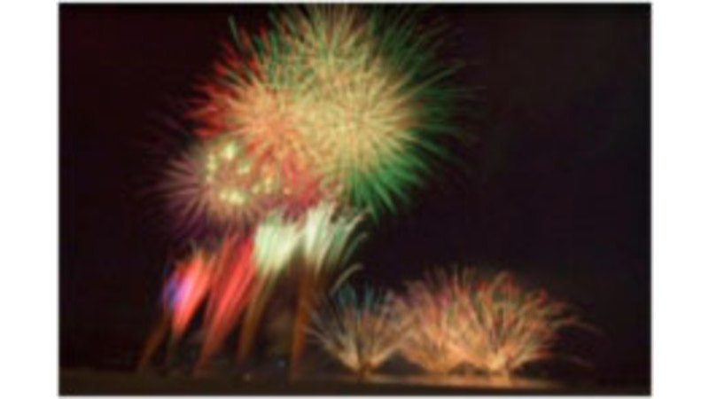白浜大浜海岸で毎年7月に行われる「白浜海の祭典」では、白浜太鼓や子供フラダンス、模擬売店等が行われ、そしてメインは何と言っても花火大会です。 すぐ目の前で、そして頭のすぐ真上で花開く花火にはものすごい迫力があります。