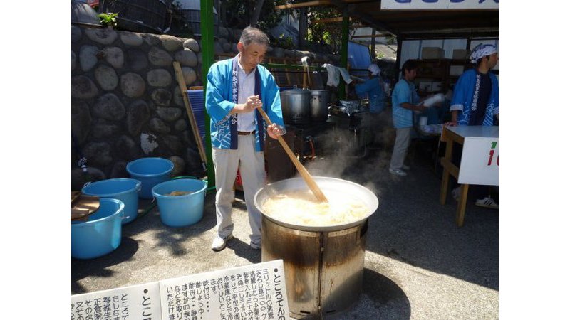 ところてんの作り方、実演販売コーナーや初島産のさざえのつぼ焼きコーナーなど、楽しいイベントです。島の食堂街でも、ところてんメニューが充実しています。