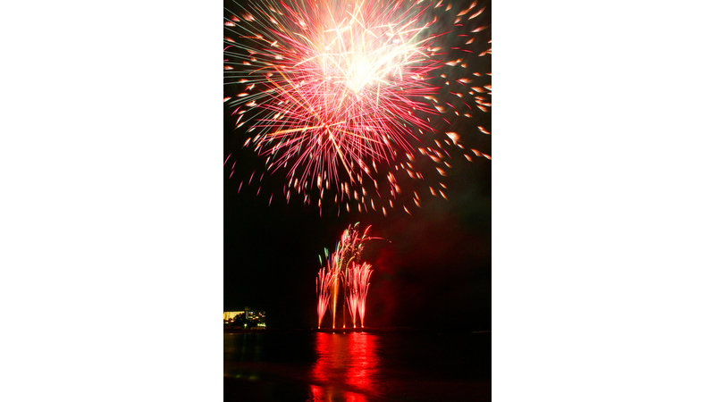 多賀湾の夏の夜空を焦がす海上花火大会。色とりどりの大輪の花が咲き誇り、伊豆多賀温泉の夏を盛り上げます。昨年初開催し好評だった「ながはまビールフェスタ」も同時開催!