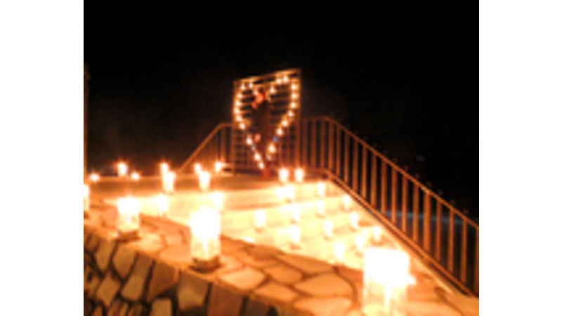 夜の海岸線を灯すキャンドルの無数の明り。大切な人とスローな夜を過ごしましょう。