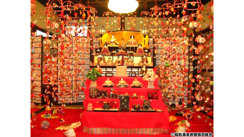 稲取温泉に伝わる雛祭りには、古く江戸時代後期の頃より、娘の成長を願う母や祖母手作りの「つるし飾り」が飾られる風習がありました。母から娘へ、娘から孫へ、一針、一針、娘の健やかな成長を願う親心をどうぞご覧くださいませ。
