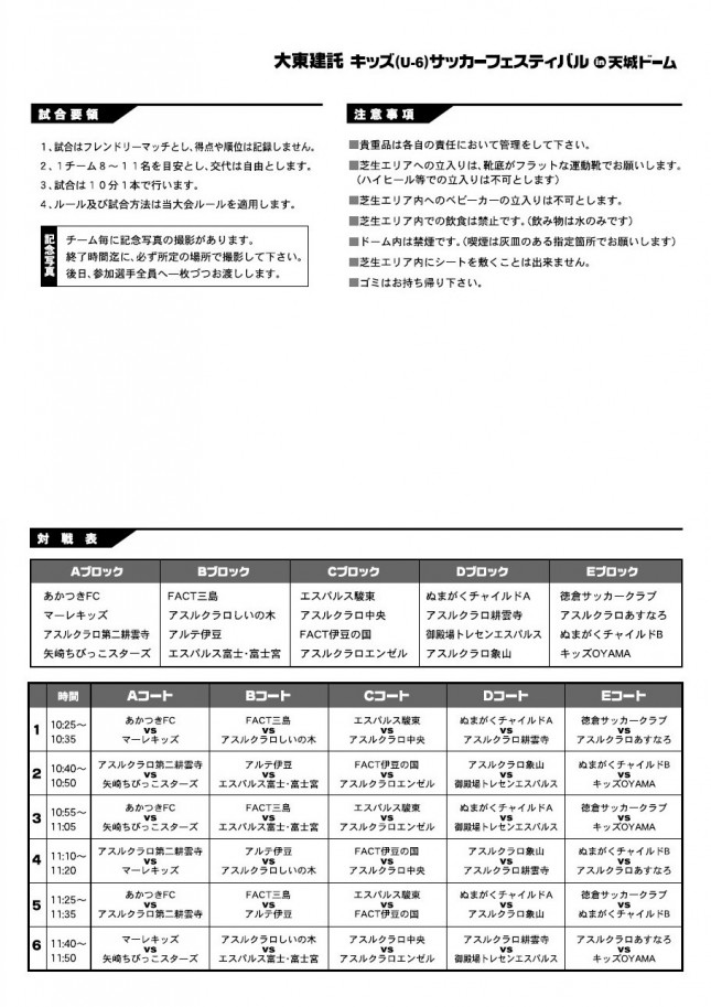 キッズチームが多数出場します! 試合はフレンドリーマッチで行われます。