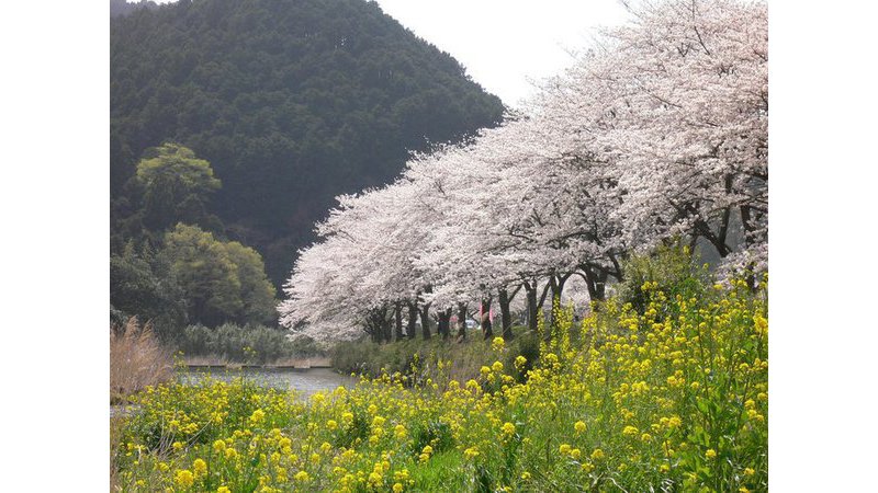 「那賀川桜コース」は、松崎海岸を通り那賀川沿いに咲くソメイヨシノと、水田の農閑期を利用した