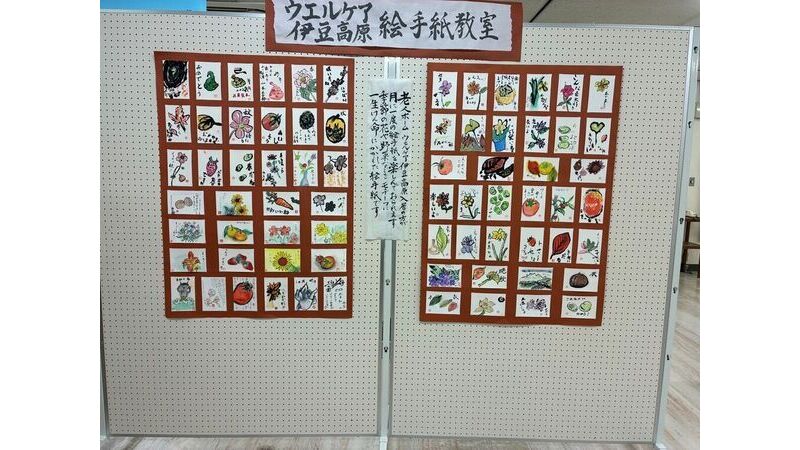 絵手紙教室の渡辺先生の発表会に私たちの作品も展示していただきました。