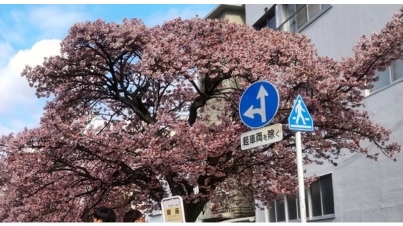ひとつひとつの花が大きくて濃いピンク色をした熱海桜